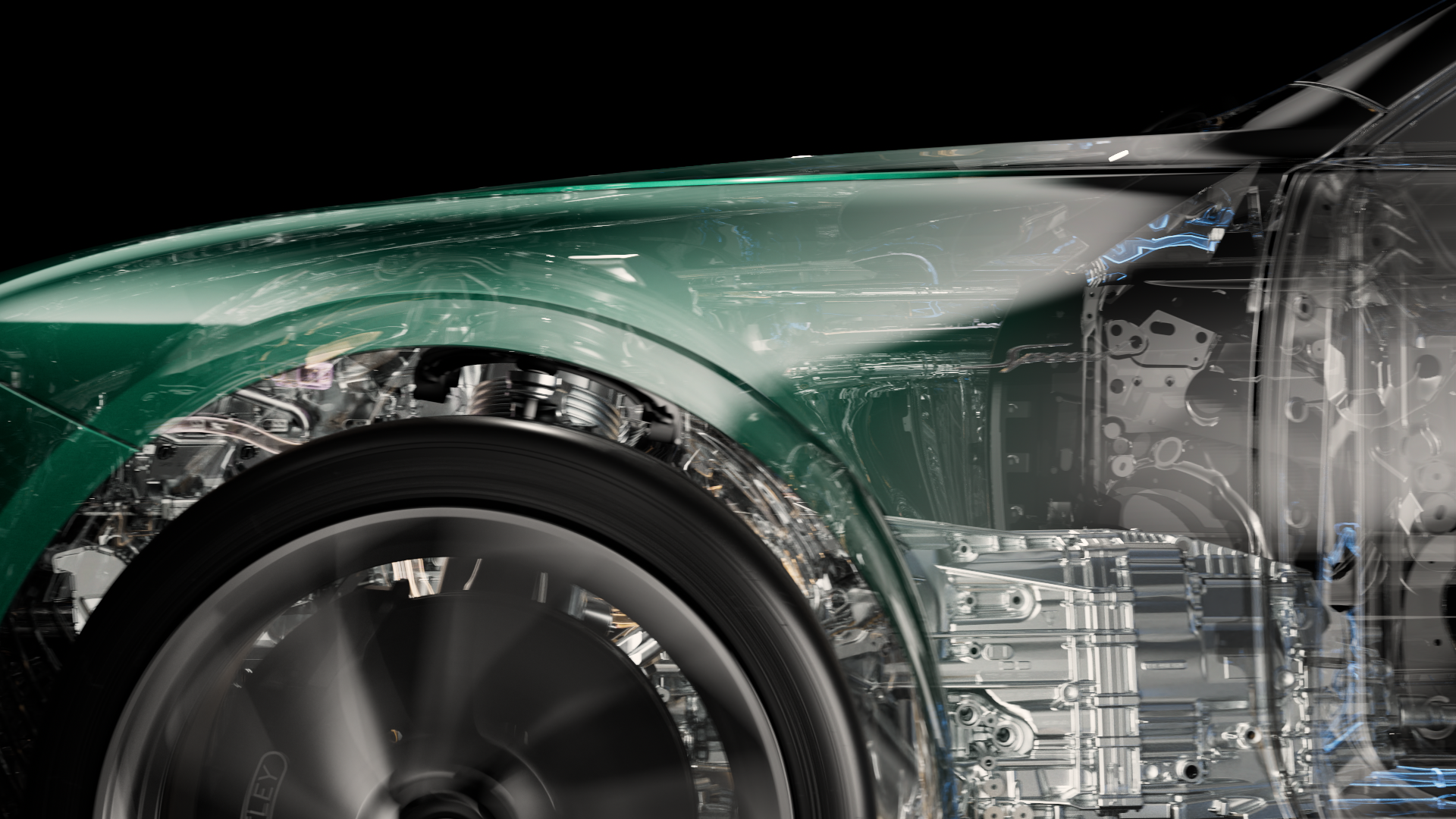 The Performance film demanded a more visceral visual language. Using a custom-built x-ray shader, we reveal the inner workings of the engine, demonstrating how hybrid power seamlessly integrates the electric motor with the combustion engine. Each shot balances elegance and aggression, underscoring the dual personality of the car’s performance.